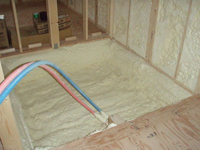工事61日目の朝8時前に現場に行ってみると、もう吹き付け断熱の業者さんが作業を始めていました。