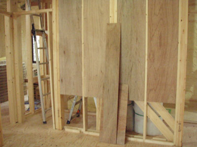 ここはテレビを置く予定の場所、将来壁掛けにしてもいいようにと、ファブリックパネル等をつけても安心なように補強していただいてます