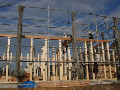 まだ筋交いが仮のものだったり、水道の配管等が終わってから床の下地張りがあるそうなので、また金曜日にこの建て方大工さんにはお世話になります。建て方大工の棟梁は私と同じ名字でなんだかちょっと嬉しかったです。