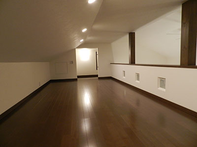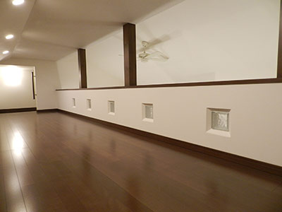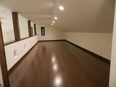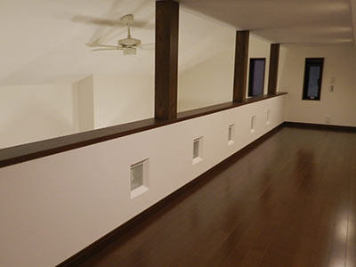 ロフトの腰壁部分にある柱は居間の梁に合わせて塗りにしてあります。