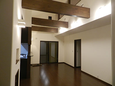 上の梁は構造上2本入れなくてはならなかったのですが、ロフトの柱にあわせて1本分追加料金で3本にしました。梁は塗るかクロス巻きと言われました。
