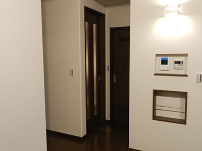 洗面所にホスクリーンをつけてありますが、普段は居間のホスクリーンを使った方が邪魔にならないので、居間の方ばかり使っています。入居する前は脱衣場の方が使うかと思ったのですが・・・