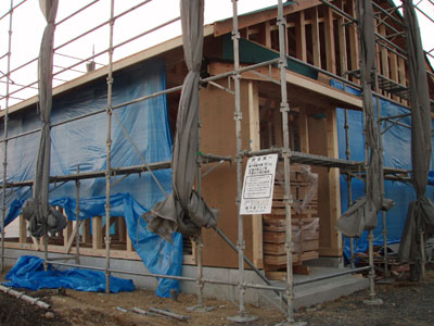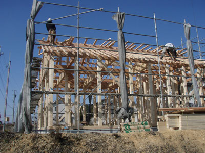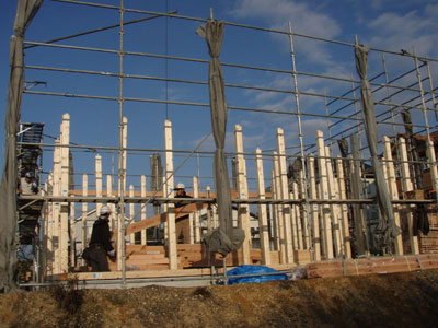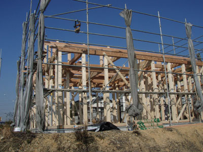 まだ筋交いが仮のものだったり、水道の配管等が終わってから床の下地張りがあるそうなので、また金曜日にこの建て方大工さんにはお世話になります。建て方大工の棟梁は私と同じ名字でなんだかちょっと嬉しかったです。