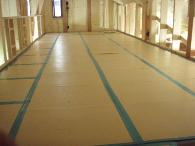 階段がついたのでロフトの床貼りもはしごよりずっと楽ですね~