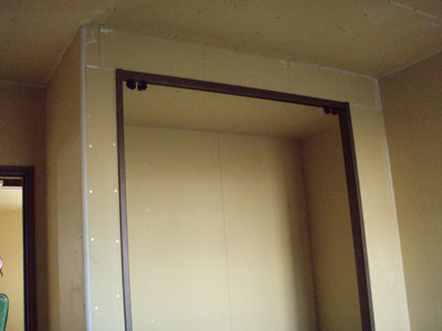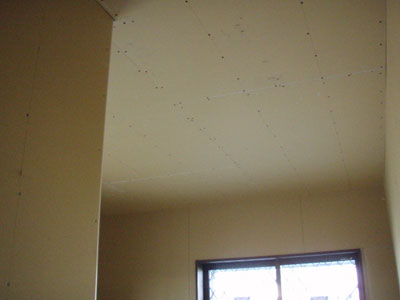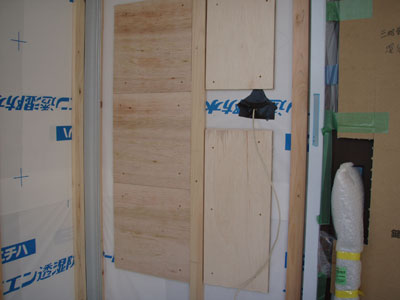 カーテンレールの付くであろう場所に補強をしていただいていますが、普通はこれが窓枠から数センチらしいです。カーテンの業者さんがここは15センチ入っているから少し高い場所にも出来るよ~って言ってました。でも、7センチ上にしました。