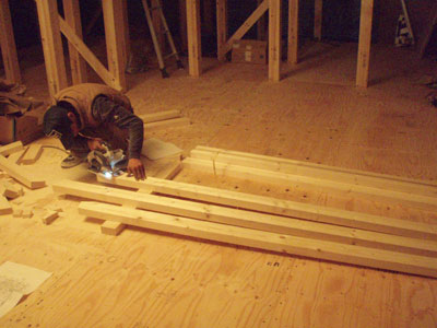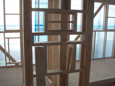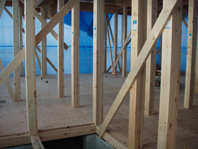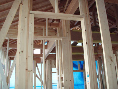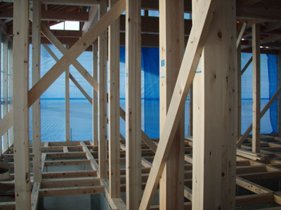 まだ筋交いが仮のものだったり、水道の配管等が終わってから床の下地張りがあるそうなので、また金曜日にこの建て方大工さんにはお世話になります。建て方大工の棟梁は私と同じ名字でなんだかちょっと嬉しかったです。