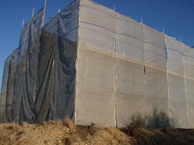 お弁当はほっかほっか亭で600円前後のものを4種類買いました。あと、温かいお茶もつけました。お昼はみなさんと一緒に家の中で土台のところに座って、長い板でテーブルみたいにして食べました。お弁当は大盛りにした方がいいかと尋ねたところ、普通盛りで構いませんとのことでしたので、普通盛りにしました。でも、豚汁のおかわりしてくれたところを見ると、少し足りないのかなとも思いましたが、10時に休憩・12時に昼食・3時に休憩なので、まぁいいかとも思います。